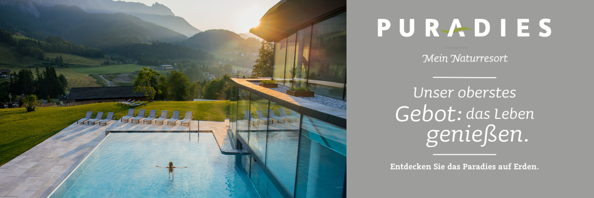 ab € 140,00 AngeboteWellness deluxe im exklusiven PURADIES Hotel mitten in den Leoganger Steinbergen im Salzburger Land. Mountainbiken, Wandern und Skifahren im Ski- und Bikecircus Saalbach Hinterglemm Leogang Fieberbrunn.