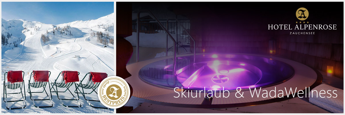 ab € 99,00Traumhafter Wellnessurlaub im Hotel Alpenrose in Altenmarkt-Zauchensee. Wada-Wellness steht für Wellness auf der Alm! Spüren Sie die Kraft der Alpen in unserer Mühlensauna und vom Whirlpool mit Bergblick!